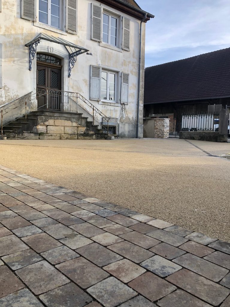 Aménagement extérieur, mise en place de pavés en béton et réalisation d’une cour en béton désactivé à Raedersdorf proche de Ferrette