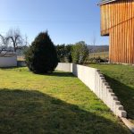 Réalisation d’un mur de soutènement en béton préfabriqué en L et palissades en granit gris clair à Raedersdorf proche de Ferrette