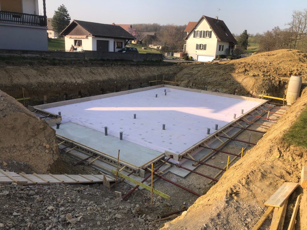 Réalisation d’un radier isolé pour construction d’une maison basse consommation à Knoeringue proche Hésingue