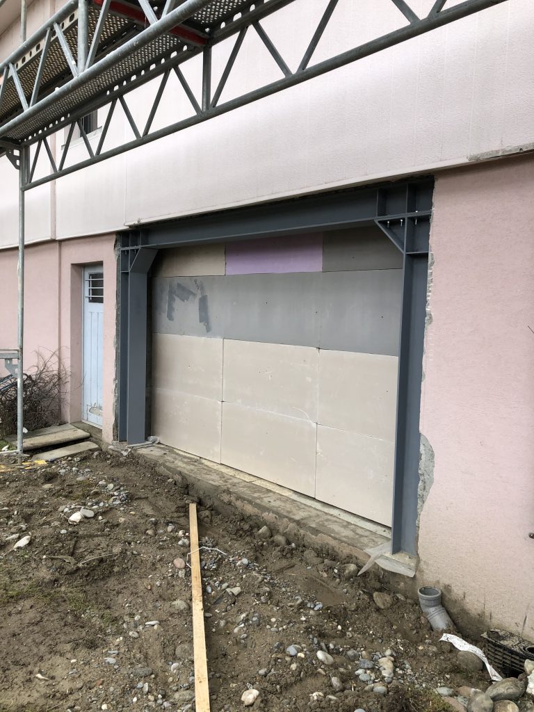 Création d’une ouverture en façade dans mur porteur, pose de poteaux et poutres métalliques à Huningue proche de Saint-Louis
