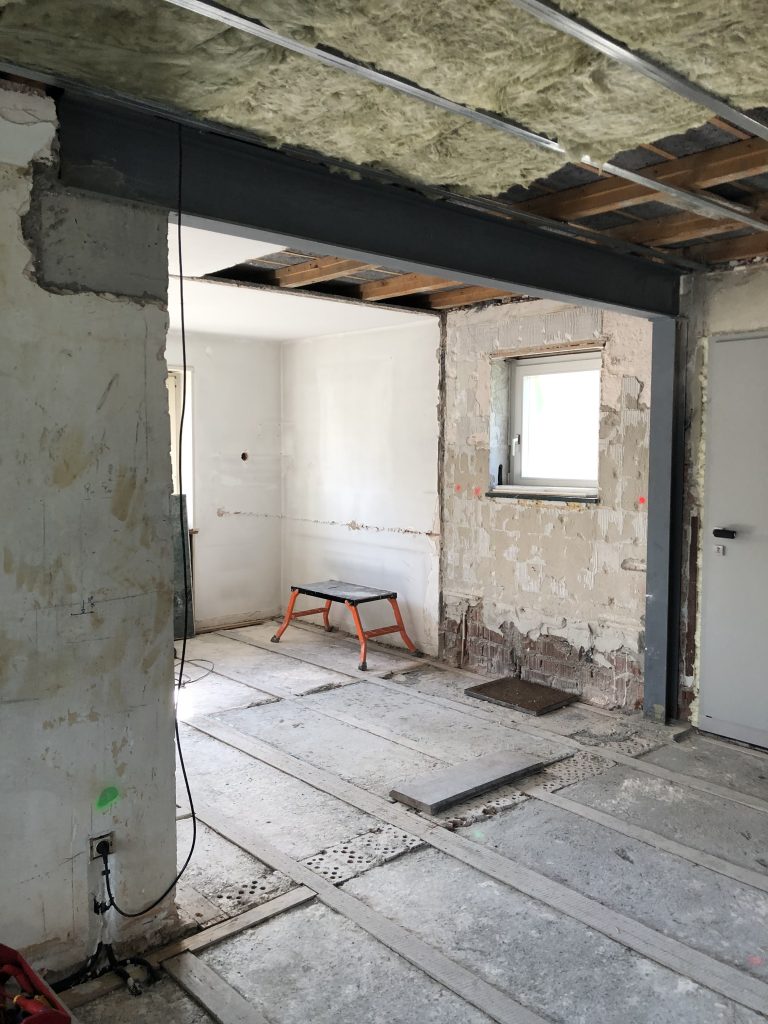 Démolition d’un mur porteur et mise en place de poutres métalliques et poteaux à Hégenheim proche de Saint-Louis