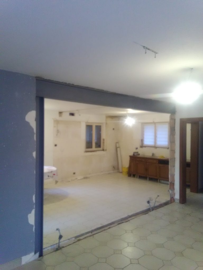 Démolition d’un mur porteur, mise en place poteau et poutre métallique, renfort de sous poutre en plaque carbone au sous sol à Grentzingen-Illtal proche de Waldighoffen